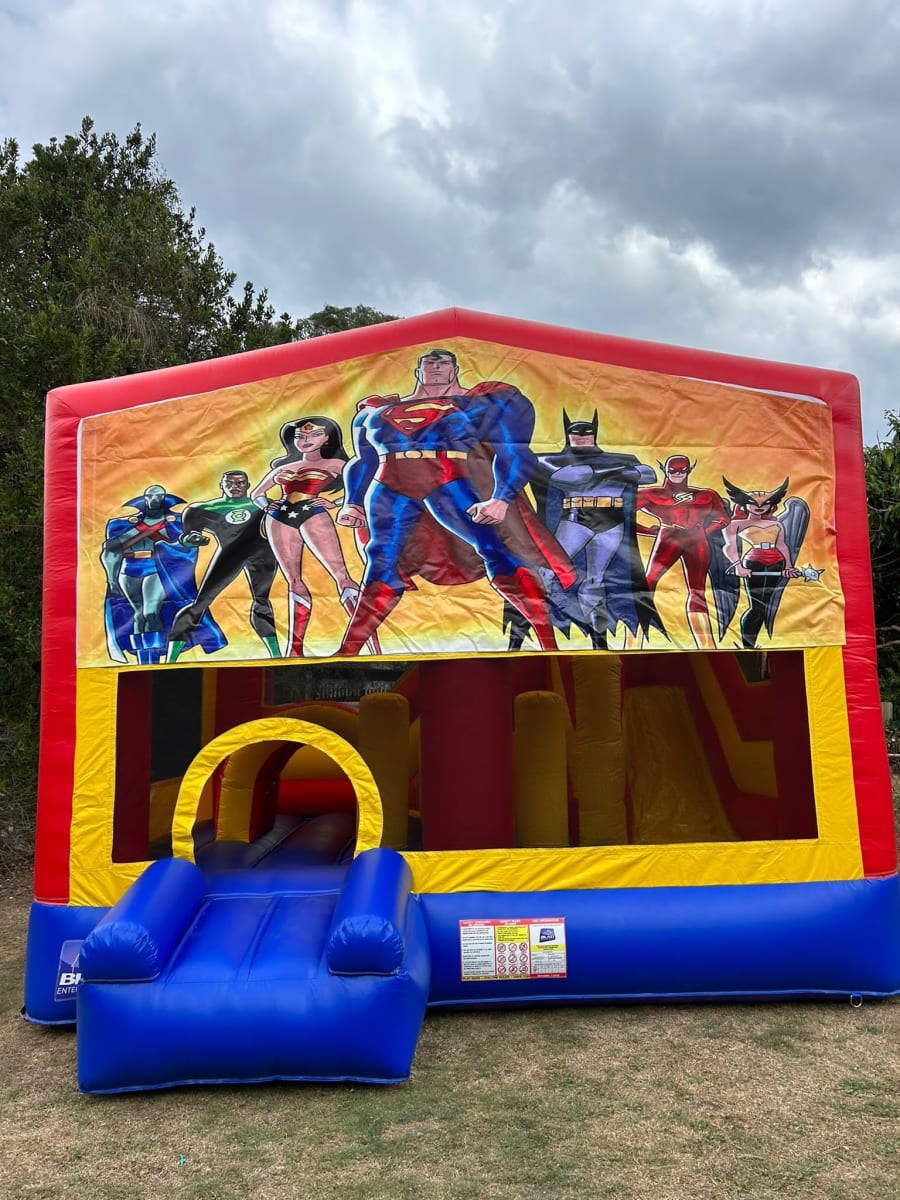 Make your next celebration unforgettable with the 5x5 Justice League Obstacle Slide. Our reliable jumping castle hire service ensures a hassle-free experience from delivery to pack-up. Reserve your date now and give your guests the superhero fun they deserve! 💥🦸♀️
