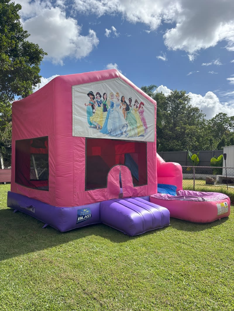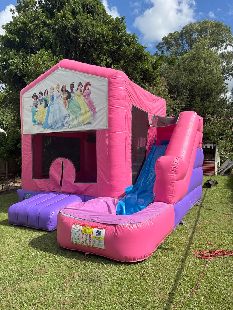 ✨ Delight your little ones with a castle designed just for them. Reserve the 4x5 Pink Princess Themed Slide Jumping Castle and let the magical memories begin! Contact us now to check availability and secure your booking. Your fairytale party awaits! 🎈