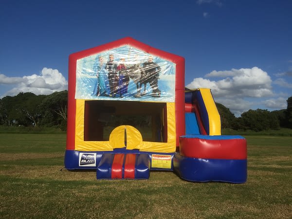 Looking for a way to make your children’s party unforgettable? ❄️ Look no further than our 4x5 Frozen Themed Slide Jumping Castle! This enchanting jumping castle features vibrant artwork inspired by the beloved Frozen film, creating a magical winter wonderland for your little ones. With its spacious 4 x 5 metre design and attached slide, kids can jump, climb, and slide to their heart’s content, staying entertained for hours.