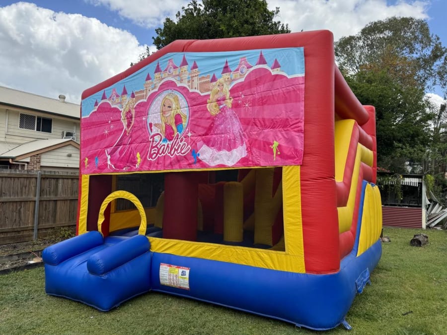 Our Jumping Castle Hire Melbourne 5x5 Barbie Obstacle Slide in Craigieburn, Pakenham, Portsea, Geelong ensures that no matter where your party is, we deliver excitement and joy straight to your doorstep. We pride ourselves on reliable delivery, expert setup, and punctual service across Melbourne and surrounding suburbs. 🛻