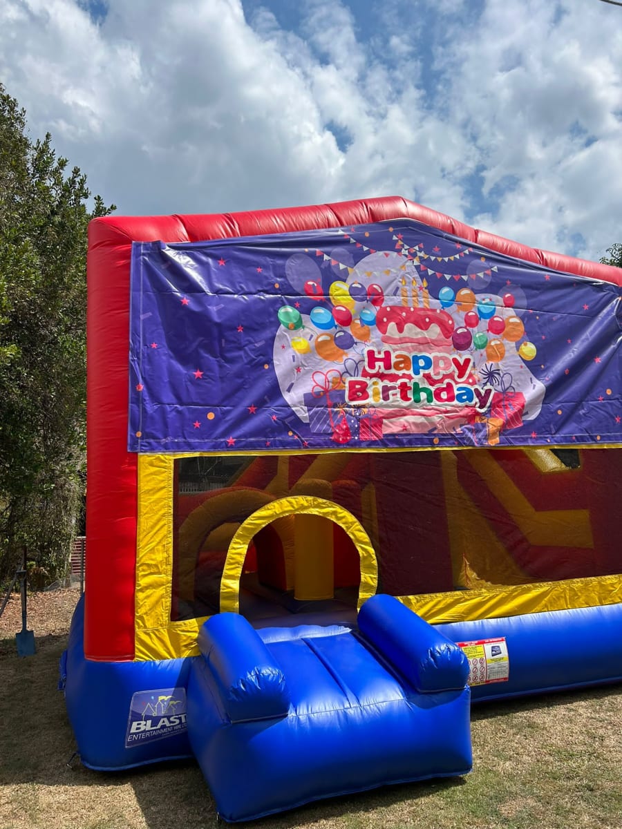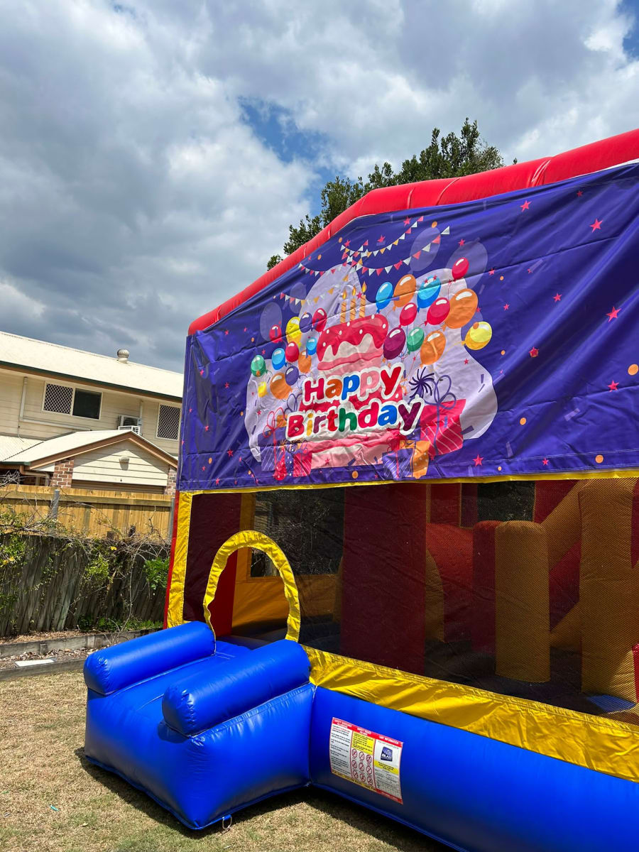 Our Jumping Castle Hire Melbourne 5x5 Happy Birthday Obstacle Slide in Melbourne, Craigieburn, Pakenham, Portsea, Geelong service delivers excitement right to your doorstep. Whether you’re hosting a backyard birthday bash in Craigieburn, a community event in Geelong, or a school fete in Pakenham, we’ve got you covered with reliable, on-time delivery and professional setup.