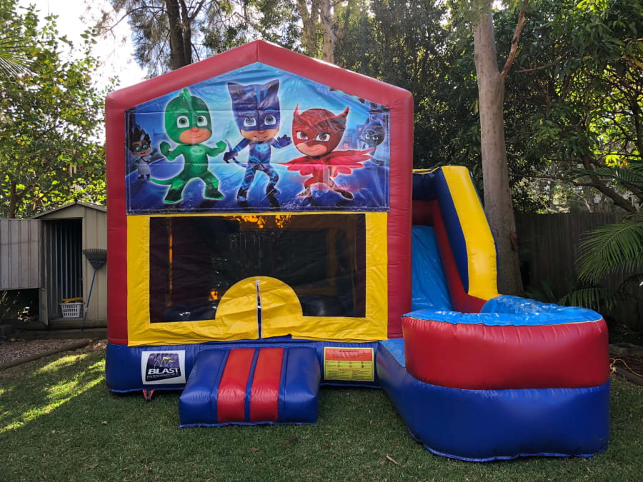 Make your next event extraordinary! Book the 4x5 PJ Mask Themed Slide Jumping Castle today and let the kids’ imaginations soar. Contact us now to check availability and enjoy the best Jumping Castle Hire Melbourne experience in your area. 🥳🚚